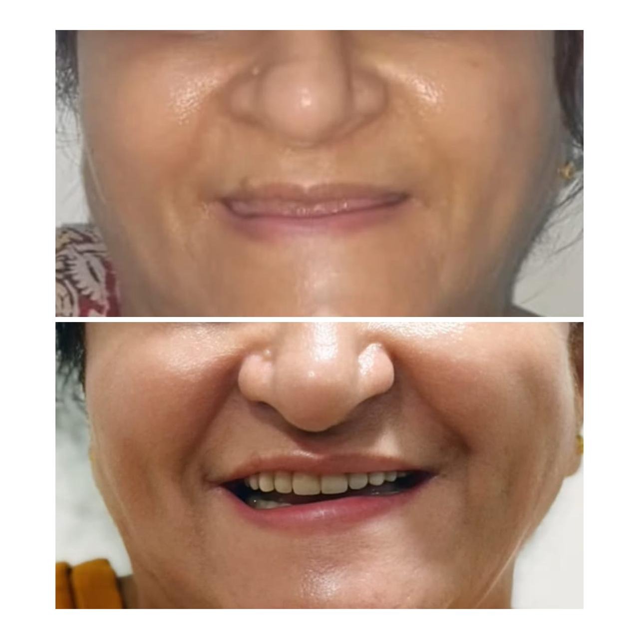 These treatments are combined to create a balanced and natural-looking smile tailored to the patient.